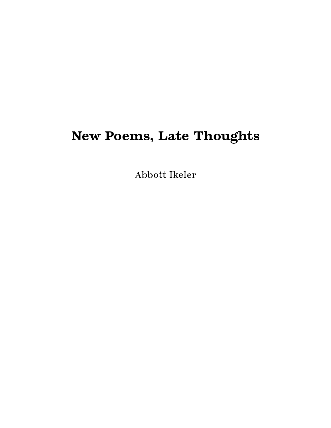 "Whether recounting a neighbor's untimely death, or recalling a youthful time in the segregated Boston of the 1960s, or simply describing the lush beauty of his garden, Abbott Ikeler writes poems that are songs of experience and innocence – poems that affirm what Robert Lowell once called 'the grace of accuracy.'"